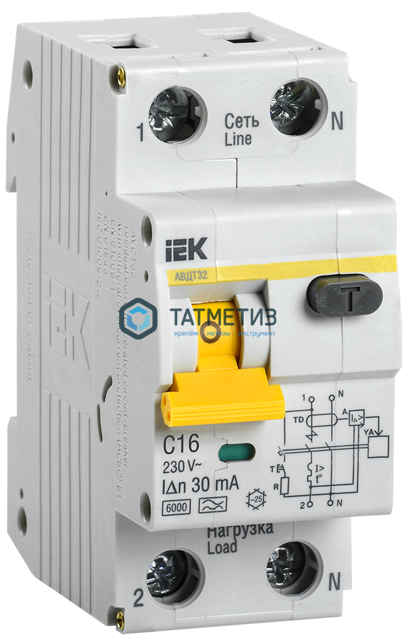 Выключатель авт.дифференциального тока 2п C 16А 30мА тип A 6кА АВДТ-32 (1P+N) IEK