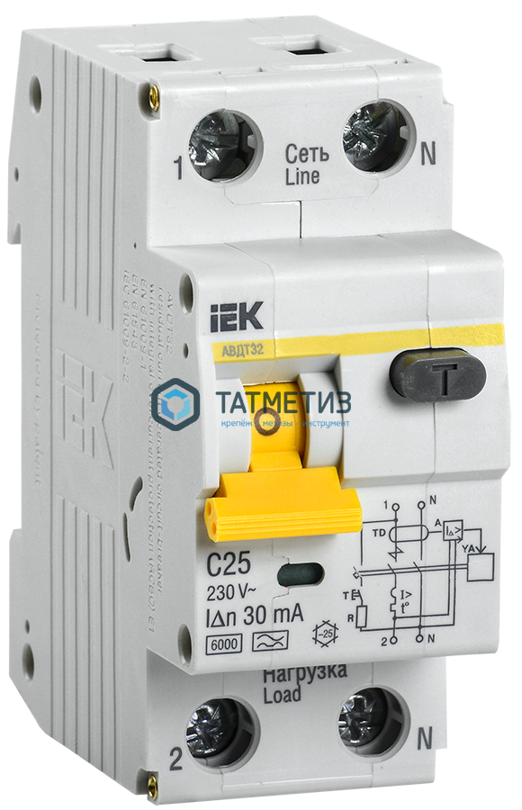 Выключатель авт.дифференциального тока 2п C 25А 30мА тип A 6кА АВДТ-32 (1P+N) IEK