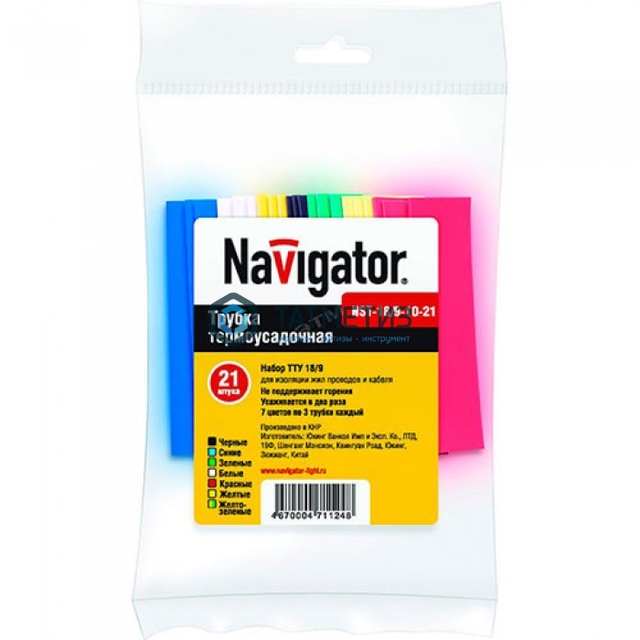 Набор термоусадочных трубок 16/8 (7 цветов по 3шт) 10см Navigator