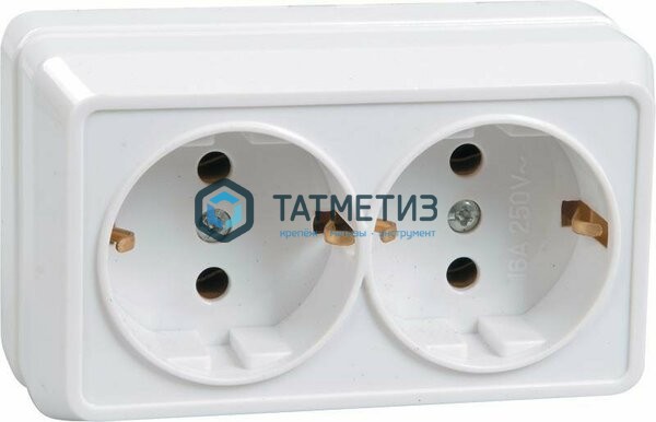 Розетка 2-м ОП Октава 16А РС22-3-ОБ с заземл. IP20 бел. ИЭК ERO21-K01-16-DC