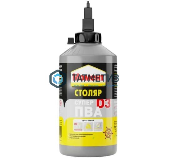 Супер клей ПВА Момент Столяр D3 750 г Б0022993 имеет в своем составе водную дисперсию сополимеров ПВА.