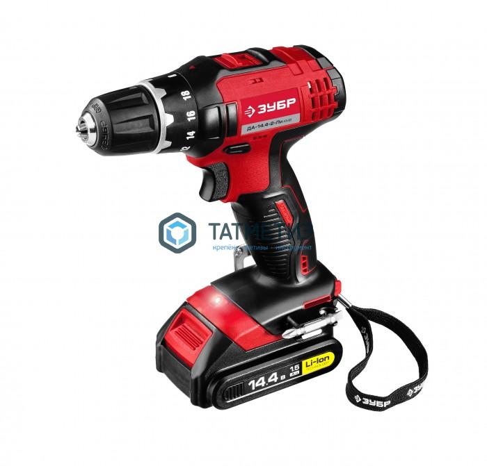 Дрель-шуруповерт ЗУБР "МАСТЕР", 14, 4 В, 1.5 А ч, Li-Ion, 2-х скор., реверс, 10мм, 0-350 0-1350об мин, 2 АКБ, БЗУ