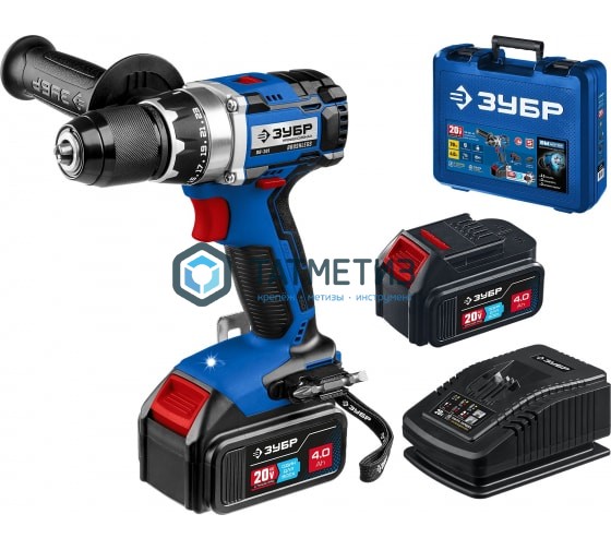 Дрель-шуруповерт 20 В, 70 Н·м, 2 АКБ (4 А·ч), бесщеточная, в кейсе, ЗУБР Т7 Профессионал
