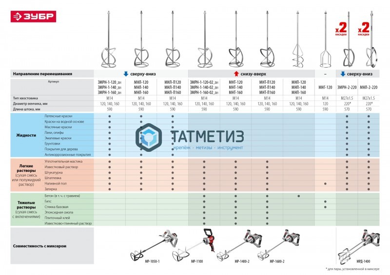 Миксер ЗУБР ЗМР-1350Э-2 строительный, двойной, 1350 Вт, 0-520 об/мин, перемешивание "сверху-вниз" -  магазин крепежа «ТАТМЕТИЗ» Миксер ЗУБР ЗМР-1350Э-2 строительный, двойной, 1350 Вт, 0-520 об/мин, перемешивание "сверху-вниз"