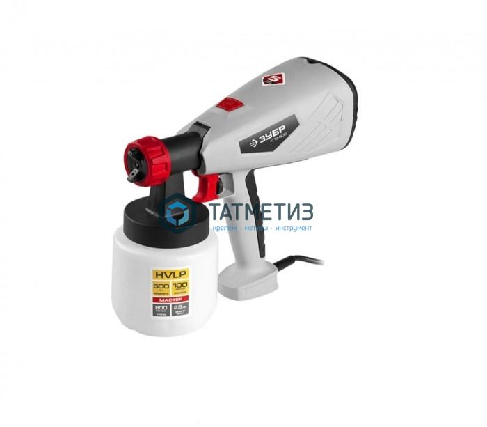 Краскопульт электрич, ЗУБР, HVLP, 0.8л, 0-800мл/мин,вязкость краски 100 DIN/сек, сопло 2.6мм, 500Вт