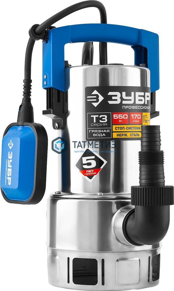 Насос дренажный для грязной воды, корпус-нерж. сталь, 550 Вт, ЗУБР Профессионал