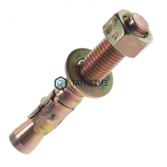 При затягивании гайки создается расклинивающее усилие, надежно укрепляя конструкцию в несущей основе. Анкер клиновой изготовлен из оцинкованной стали с желтым пассивированием.