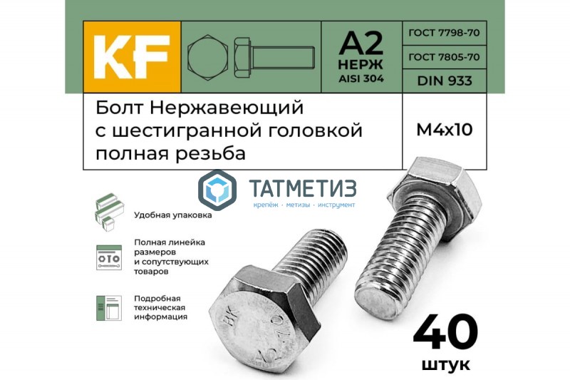 Болт М10 х150 DIN 933 А2 нержавейка -  магазин крепежа «ТАТМЕТИЗ» Болт М10 х150 DIN 933 А2 нержавейка