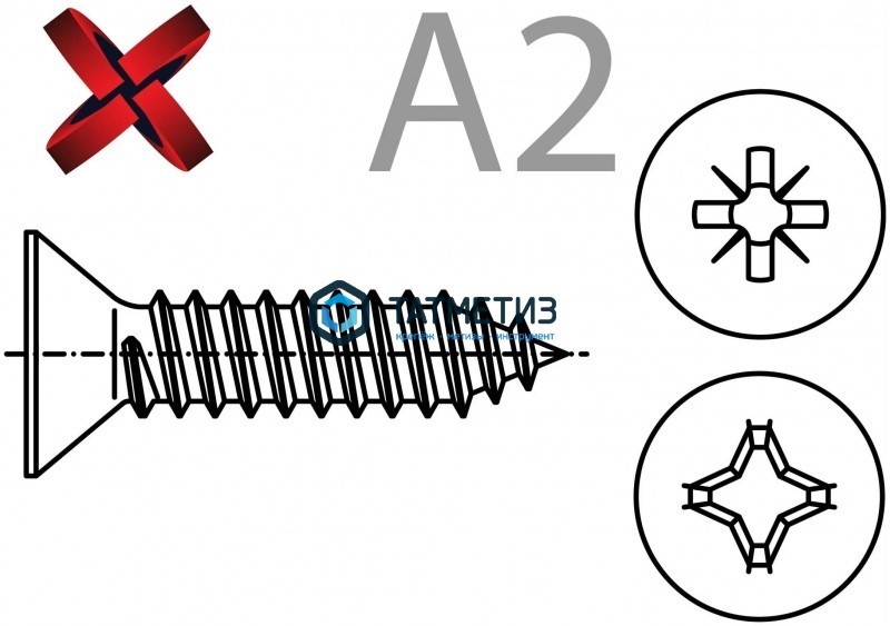 Саморез DIN7982 потай кр.шлиц 3,9 х 38 А2 нерж.