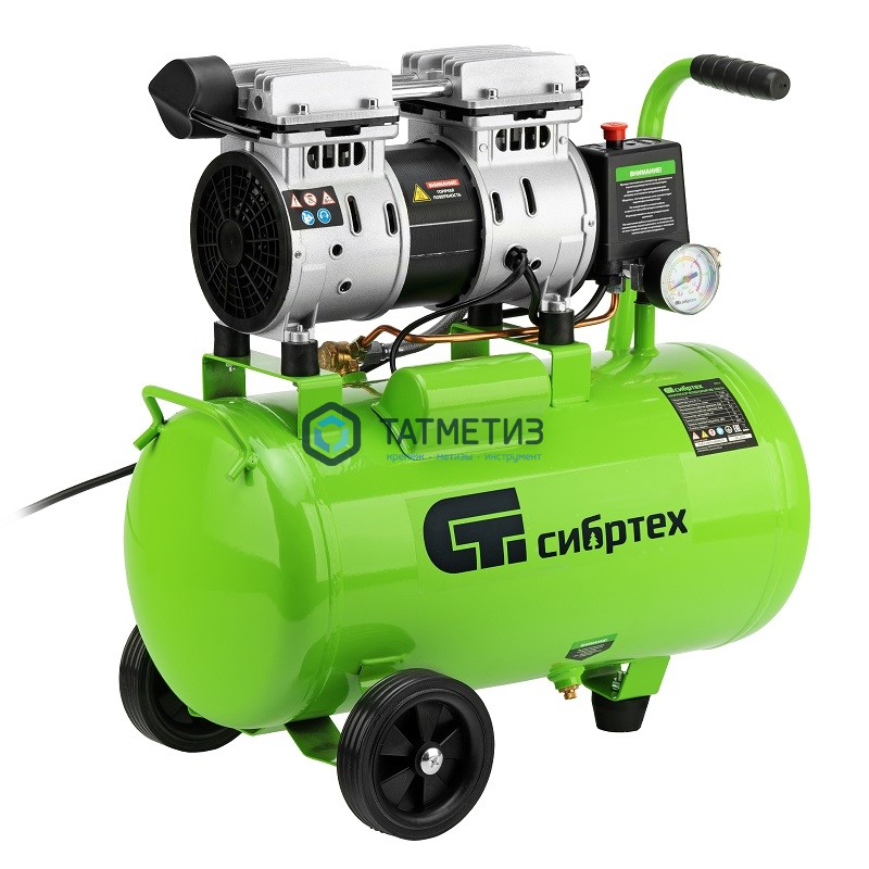 Компрессор безмаслянный малошумный МБ 1100/24,1100 Вт, 24 л, 170 л/мин// Сибртех