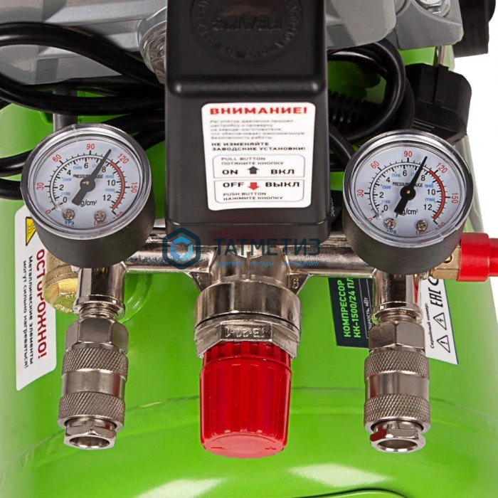 В модели одновременно сочетаются мобильность и высокая производительность 198 л/мин. Большой магнитопровод и качественная обмотка статора позволили увеличить мощность двигателя до 1.5 кВт. Сжатый воздух под давлением 8 бар нагнетается в ресивер емкостью 24 литра, а затем подается к пневмоинструменту.