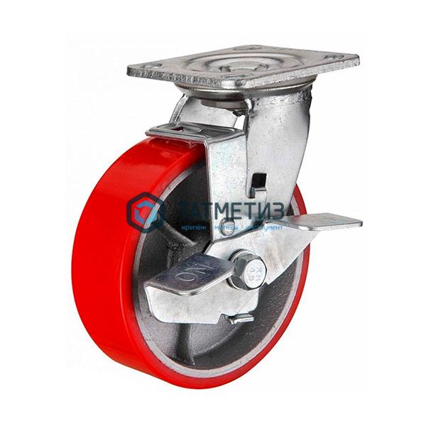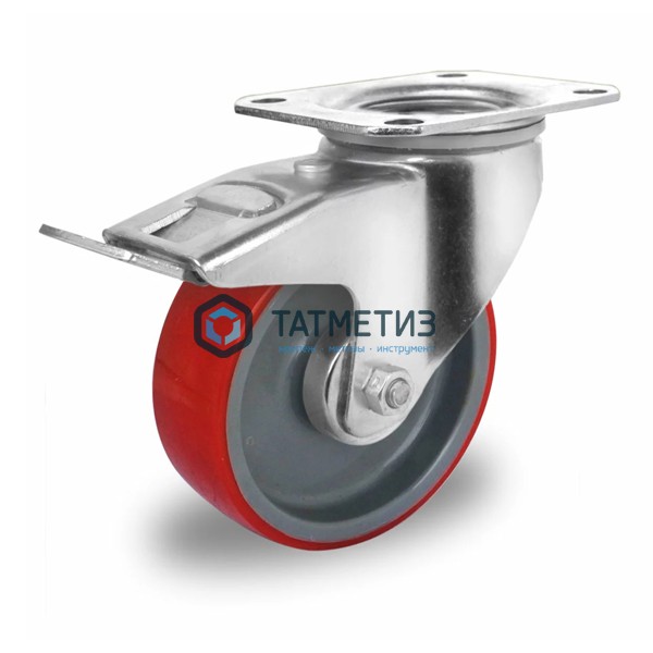 Колесо большегрузное ПОЛИУРЕНТАН поворотное с тормозом d 100 мм -  магазин крепежа «ТАТМЕТИЗ» Колесо большегрузное ПОЛИУРЕНТАН поворотное с тормозом d 100 мм
