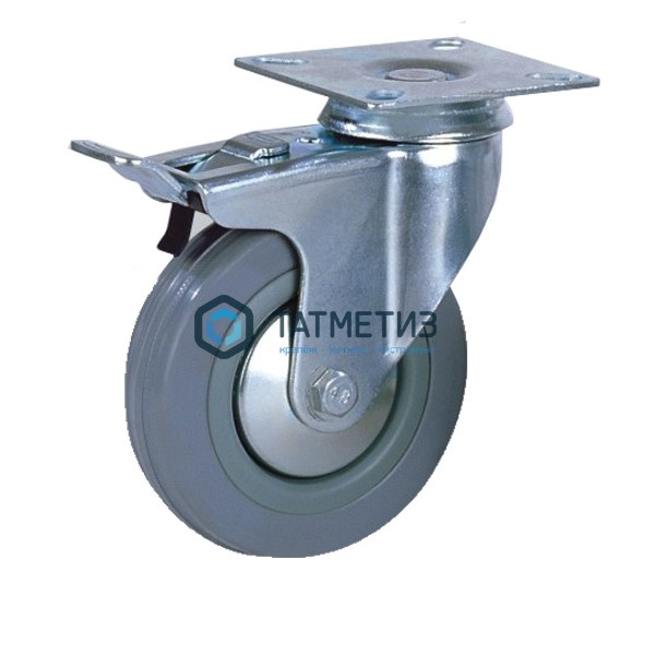 Колесо поворотное с площадкой и тормозом серая резина d 100 мм