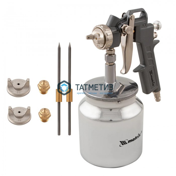 Краскораспылитель пневмат. с верхним бачком V=1,0 л, сопла диаметром 1.2, 1.5 и 1.8 мм// Matrix -  магазин крепежа «ТАТМЕТИЗ» Краскораспылитель пневмат. с верхним бачком V=1,0 л, сопла диаметром 1.2, 1.5 и 1.8 мм// Matrix