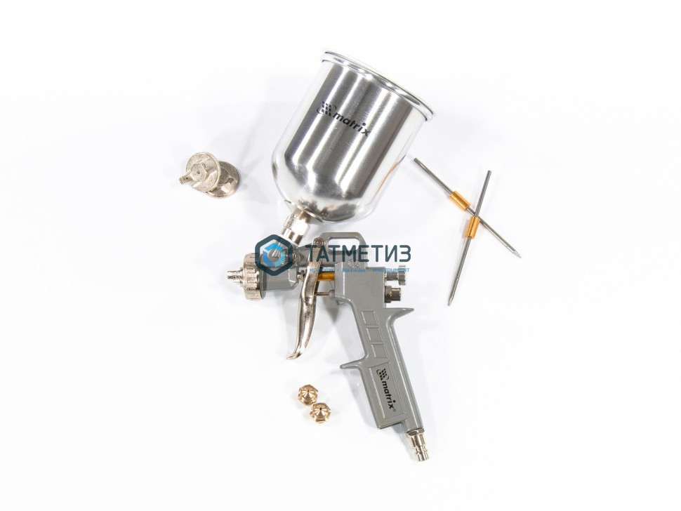 Краскораспылитель пневмат. с верхним бачком V= 0,6 л, сопла диаметром 1.2, 1.5 и 1.8 мм// Matrix -  магазин крепежа «ТАТМЕТИЗ» Краскораспылитель пневмат. с верхним бачком V= 0,6 л, сопла диаметром 1.2, 1.5 и 1.8 мм// Matrix