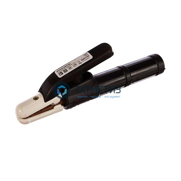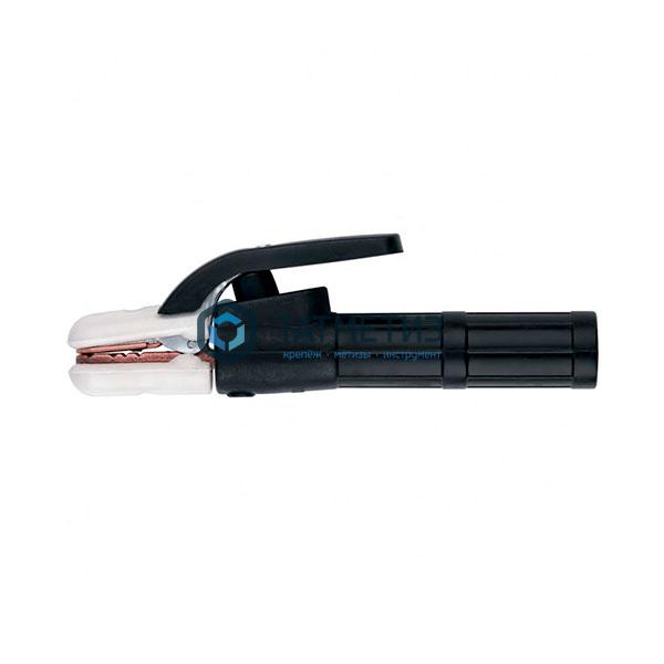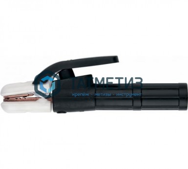 Представляет собой зажим клещевого типа, который служит для подвода тока. Данный электродержатель предназначен для работы с током не более 500 А. Пластиковые ручки являются изолятором, но при этом важно, чтобы электроведущие части держателя не соприкасались со свариваемым изделием или руками человека.