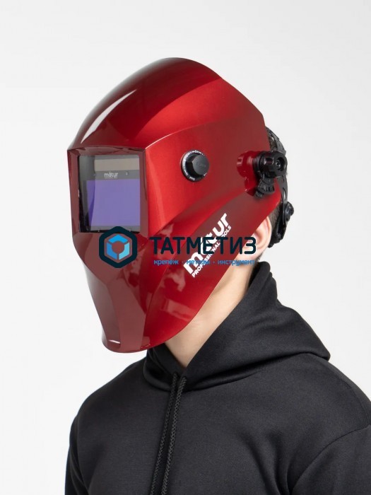 Сварочная маска Matur - представляет собой защитный лицевой щиток, который с помощью ремней крепится на голове рабочего, предназначен для определённых видов сварки, для защиты глаз, лица и шеи. Маска имеет удобный реечный наголовник позволяет регулировать удаленность маски от лица, высоту посадки маски на голове, размер и натяжения, что позволяет настроить маску наиболее комфортно для себя. В маске установлен автоматический светофильтр (Хамелеон). Сварочные маски Хамелеон характеризуется надежной защитой и комфортом использования. При эксплуатации такой маски нет необходимости вручную поднимать защитное стекло или светофильтр, чтобы наблюдать за сварочным швом. Фильтр автоматически настраивает степень затемнения стекла. Также, к преимуществам таких масок можно отнести идеальную защиту от термического воздействия, от ультрафиолетового и инфракрасного излучения, наличие солнечной батареи для самостоятельной подзарядки светофильтра, наличие регулировок чувствительности фильтра, и конечно более долгий срок службы.